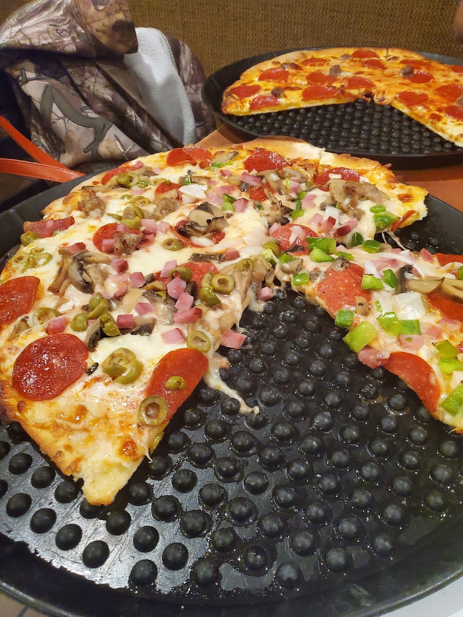 Pepperoni and Olives Ham Peppers Onions and Ground Beef